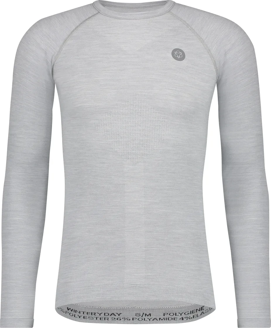 Het Winterday Lange Mouwen Ondershirt van Agu houdt je warm tijdens de koude winterdagen. Het ondershirt is gemaakt van merinowol, waardoor je lichaam goed op temperatuur blijft en vocht (bijv. van zweet) efficiënt wordt afgevoerd. Zo zit je comfortabel in het zadel, ook wanneer het kwik daalt. De pasvorm van het shirt is afgestemd op het gebruik op de fiets.