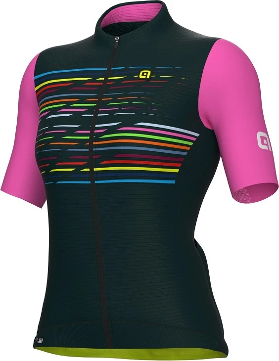 Het Alé Logo fietsshirt is de ideale combinatie tussen comfort en prestaties. Het shirt is gemaakt van het super lichte Micro Aero. Zoals de naam al doet vermoeden sluit dit shirt netjes aan rond het lichaam voor de beste aerodynamica. Dit shirt is speciaal gemaakt voor dames. De mouwen zijn van een andere stof met een bijenkorf reliëf, dit zorgt ervoor dat het shirt voelt als een tweede huid. Het fietsshirt weegt slechts 115 gram, dus ideaal als je een technisch hoogwaardig en licht fietsshirt zoekt.