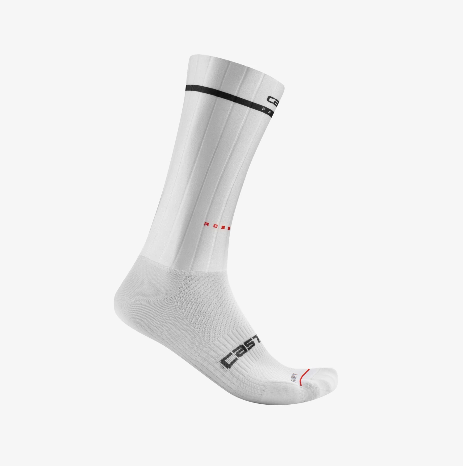 Voor de wielrenner die écht het beste uit zichzelf en zijn materiaal wilt halen zijn deze aerodynamische sokken een perfecte aanwinst. Castelli heeft in testen laten zien dat de Fast Feet 2 sokken – zoals de naam al zegt – je echt sneller maken. De sok bespaart 2 watts op 50 km/u en is daardoor met recht een snelle sok te noemen.