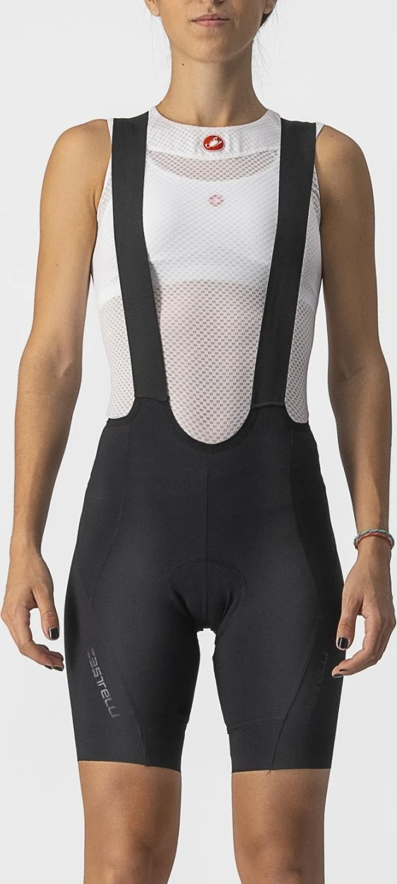 De Castelli Velocissima 3 Bibshort is een topkwaliteit bibshort voor een zachte prijs. De bibshort is voorzien KISS Air² Donna zeem, waarmee je een flinke fietstocht kunt maken. Een hele dagtocht is misschien niet zo comfortabel, maar een paar uurtjes in het zadel misstaan zeker niet! De bretels hebben een drop-tail ontwerp, waardoor ze enorm rekbaar zijn. Hierdoor kun je de bibshort gemakkelijk naar beneden trekken zonder de bretels af te hoeven doen. Half naakt naar de wc gaan is hiermee dus verleden tijd! Ook kunnen de bretels zowel aan de voorkant als aan de achterkant gekruist worden.Â
