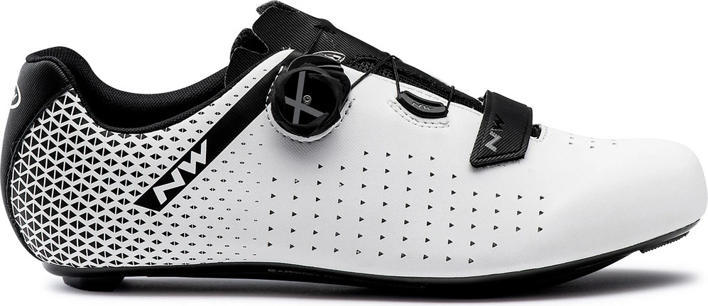 De Northwave Core Plus 2 Raceschoen is een essential in jouw wieleroutfit. Deze raceschoen is namelijk gemaakt om veel gedragen te worden. De schoen heeft een composiet zool, die versterkt is met Carbon, voor een stijve zool die jou zo efficiënt mogelijk je kracht laat overbrengen. Naast de stijve zool, is ventilatie ook belangrijk in een schoen. De Core Plus 2 raceschoen is goed geventileerd dankzij de ‘poriën’ in de zijkant van de schoen, en dankzij de vijf ventilatiegaten onderin de schoen. De SLW3 draaisluiting zorgt ervoor dat de schoen als gegoten zit en dat je kunt genieten van alle kracht die je in een rijbeweging kunt omzetten.Â