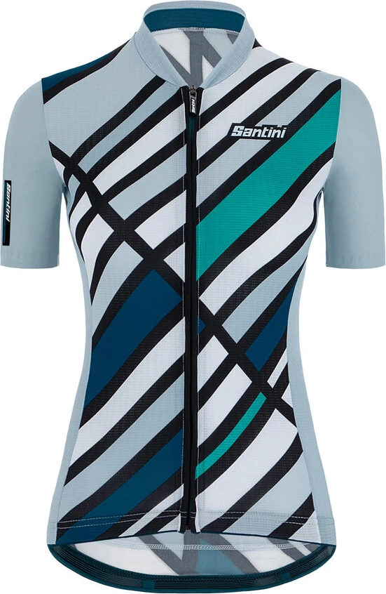 De Santini Eco Sleek Raggi jersey is een kwalitatief hoogwaardig fietsshirt voor dames, waarmee jij zeker goed kunt presteren. Dit shirt sluit zeer goed aan om jouw lichaam, om je richting de top te helpen. Het shirt heeft ruw gesneden mouwen, waardoor de druk wordt verdeeld over jouw bovenarmen. Dit komt het draagvermogen ten goede. Het shirt heeft een siliconen gripper om het shirt op de juiste plaats te houden.Â