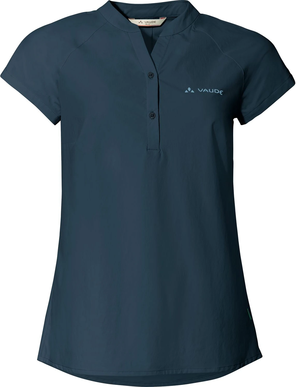 Dit fietsshirt van Vaude heeft korte mouwen en is gemaakt van sneldrogend, ademend materiaal. Daardoor is het shirt vooral geschikt voor gebruik op warme, zomerse dagen. Het shirt heeft een opstaande kraag en voorpand met knoopsluiting. Aan de achterkant van het shirt is een plooi gemaakt in de stof. Dit alles maakt dat het shirt niet alleen comfortabel zit, maar ook een stijlvolle uitstraling heeft.Â